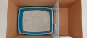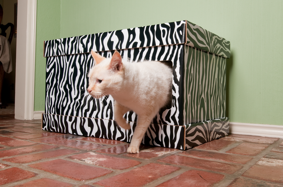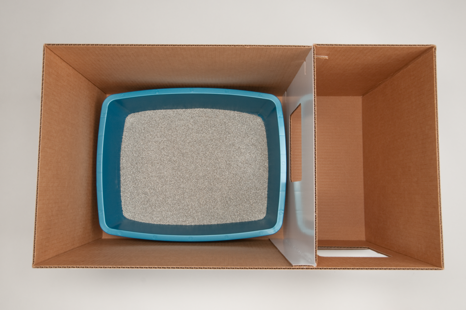 The heavy corrugated paper construction of Mouzers aMazing Litter Box Cover™ along with the double compartment design virtually eliminates the odors associated with litter pans.